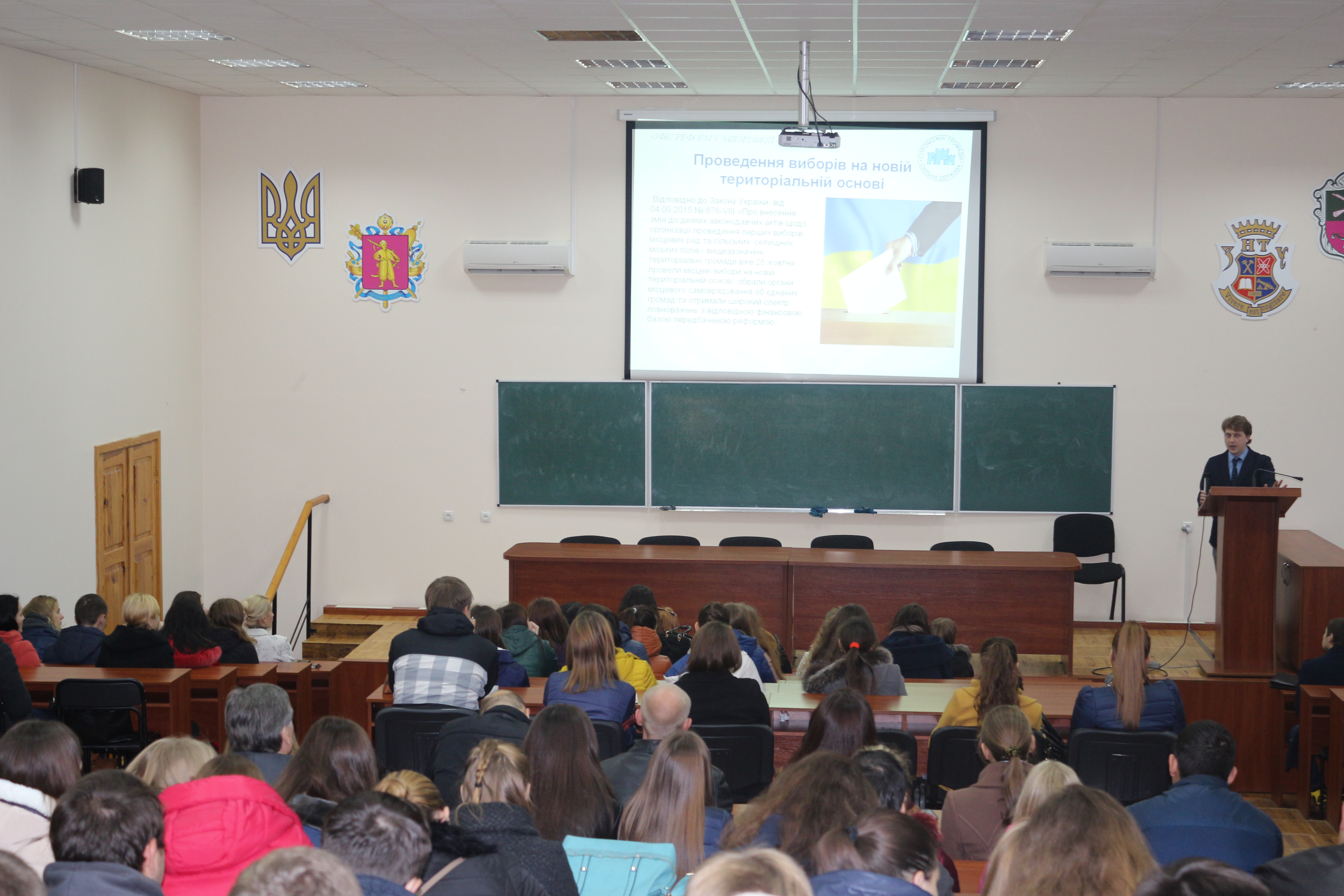 На запрошення студентів і викладачів Запорізького Національного технічного університету, директор Офісу реформ у Запорізькій області Олександр Свистун та експерт-консультант Офісу реформ у Запорізькій області Маргарита Трипольська провели лекцію на тему «Сучасний стан та перспективи об’єднання територіальних громад в Запорізькій області».