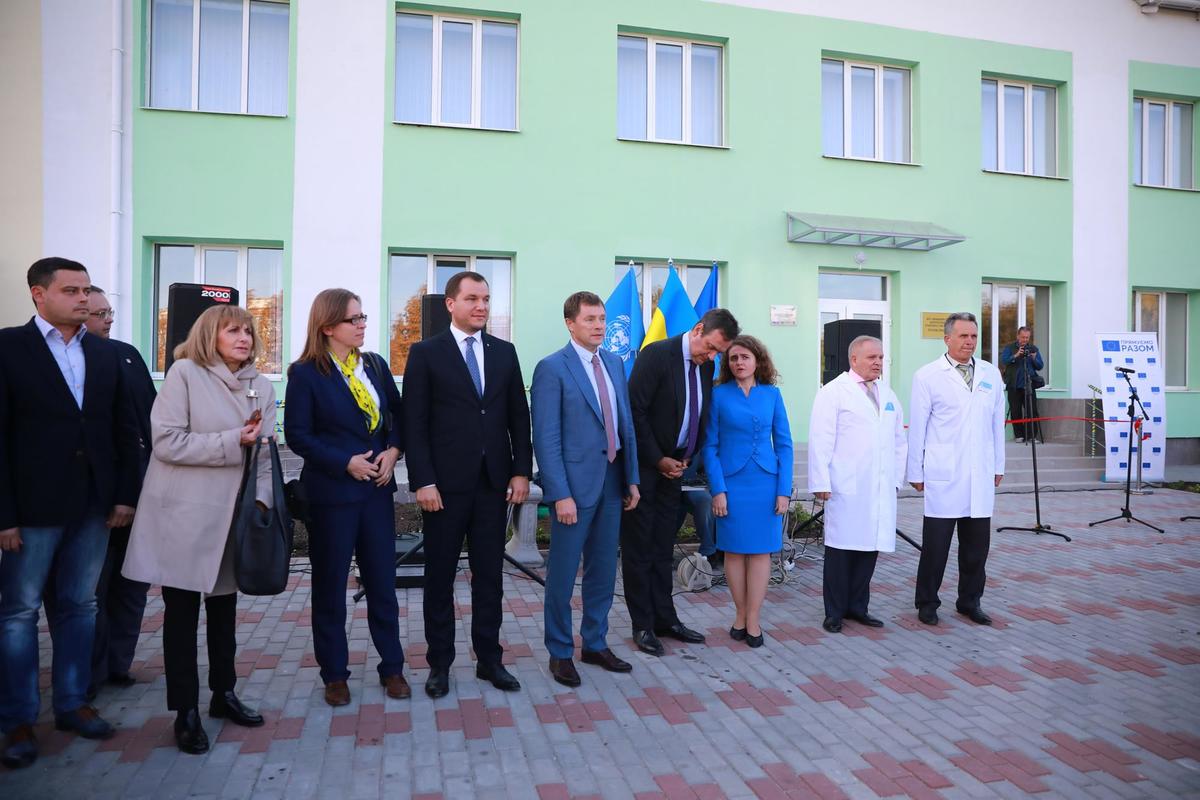 На урочисте відкриття розширеної поліклініки зібралося чимало місцевих жителів. Їх привітали представники обласної влади, перший заступник Міністра розвитку громад і територій України Дмитро Живицький, голова Представництва ЄІБ в Україні Жан-Ерік де Загон, заступниця голови Представництва ЄС в Україні Анніка Вайдеманн, постійна представниця ПРООН в Україні Дафіна Ґерчева.