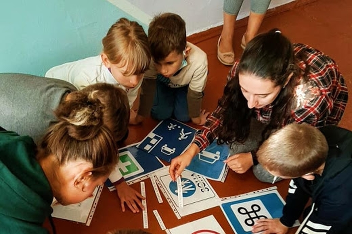 З учнями 1-8 класів із синдромом Дауна педагоги провели гру-інсценізацію «Твій друг – безпечний рух». Дітей ознайомили з правилами поведінки на вулицях і дорогах, діти спробували себе в ролі водіїв та пішоходів, засвоїли вміння правильно переходити дорогу, вивчили сигнали світлофора.