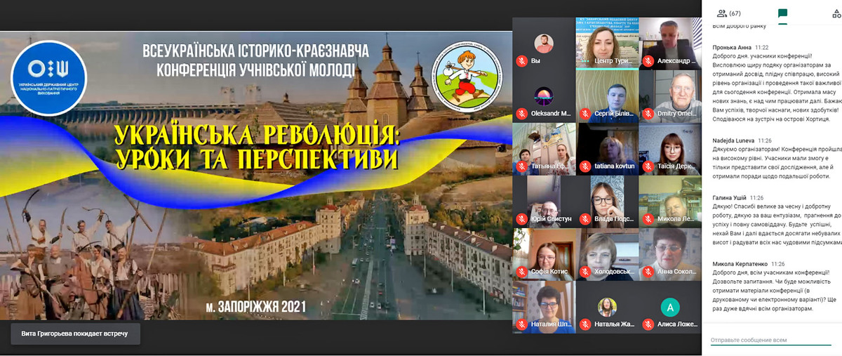 23-25 квітня 2021 року в м. Запоріжжя у форматі он-лайн на платформі додатку Google Meet відбулася Всеукраїнська історико-краєзнавча конференція учнівської молоді «Українська революція: уроки та перспективи».