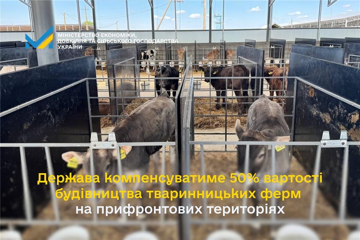 Кабінет Міністрів України ухвалив рішення про посилення підтримки фермерів на прифронтових територіях. Відтепер держава компенсувати до 50 % вартості будівництва тваринницьких ферм для утримання великої рогатої худоби. Про це повідомляє Міністерство економіки, довкілля та сільського господарства України.