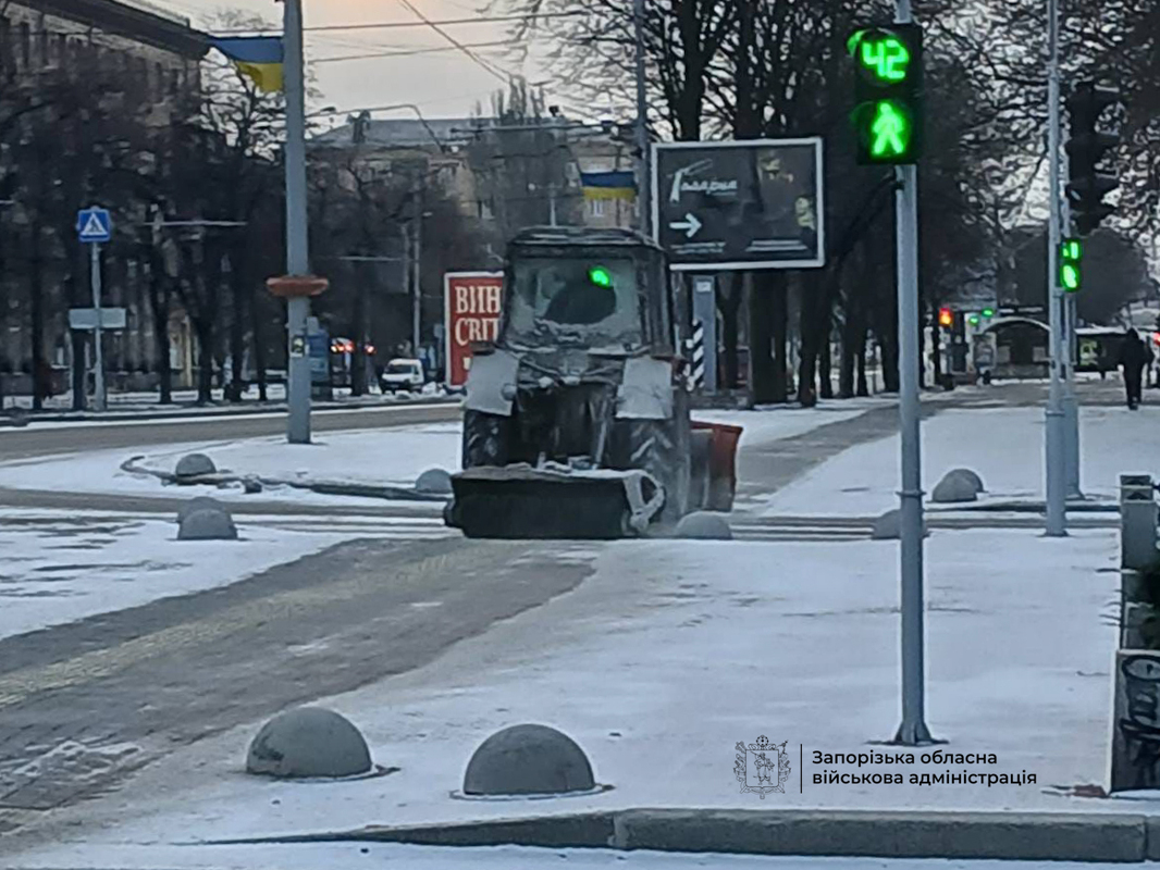 На  06:00 ранку на автошляхах державного значення було задіяно 4 одиниці техніки, на місцевих дорогах – 2. У місті Запоріжжя на посипку проїзної частини вулиць та тротуарів вийшло 29 одиниць спецтехніки.
