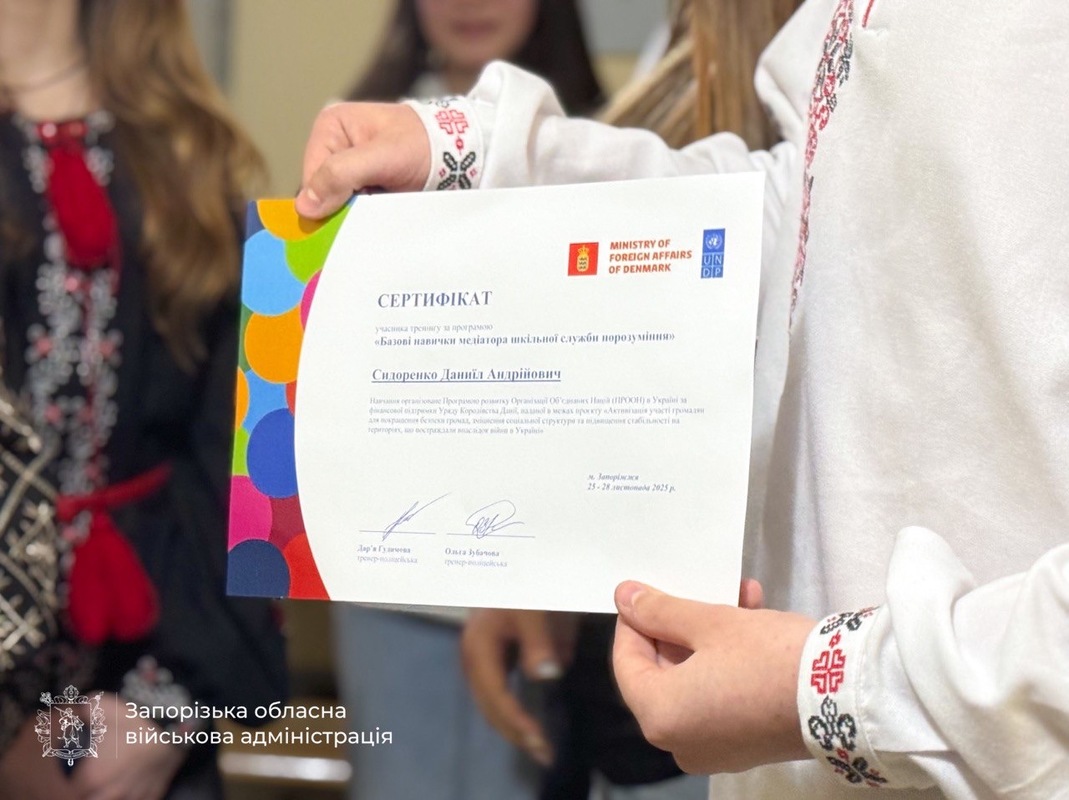 Розвиток навичок самоконтролю, вирішення конфліктів, спілкування та емпатія. В одному з навчальних закладів Запоріжжя відкрився перший в області сучасний простір «Шкільної служби порозуміння». Приміщення для «Шкільної служби порозуміння» створено та облаштовано ПРООН за фінансової підтримки уряду Данії. – Простір працює з початку січня. Він став платформою співпраці ювенальних поліцейських, педагогів та учнів. Його мета – навчити дітей вирішувати конфлікти без агресії, протидіяти булінгу та знаходити спільні шляхи розв’язання проблем. У школі працює команда медіаторів – це учні сьомих, восьмих та дев’ятих класів, які пройшли курс «Базові навички медіаторів шкільної служби порозуміння». У разі виникнення конкретної ситуації команда медіаторів разом із викладачами та представниками ювенальної поліції визначають способи її вирішення, – проінформувала т. в. о. директора закладу освіти Світлана Кутузова. Кімната обладнана м’якими зонами для учасників діалогу – кріслами-мішками та модульними татамі. Для дітей створені комфортні умови, які дозволяють розвивати практичні навички вирішення конфліктів. – Від початку роботи цього простору учні стали більш активними та навчились спрямовувати свою зацікавленість телефонами у продуктивне русло. За їхнім проханням були створені соцмережі, які вони ведуть самостійно, висвітлюючи діяльність шкільного простору медіації. Таким чином, діти не лише спілкуються між собою, а й реалізують себе творчо та соціально, – зазначила заступниця директора з виховної роботи Ганна Тєлєнкова. Навчальний заклад долучився до участі у Всеукраїнській програмі «Ти як?». Заняття шкільної служби порозуміння проводять за методикою «рівний – рівному», де самі діти навчають і підтримують одне одного. – Коли про складні речі говорять самі діти – у безпечному та довірливому середовищі – вони краще чують і розуміють одне одного. У такому просторі можна залишатися дитиною, але водночас навчатися відповідально вирішувати серйозні питання. Важливо, що учні не лише опановують навички медіації, а й беруть на себе лідерство, вчаться домовлятися та знаходити рішення навіть у непростих ситуаціях, – зазначила директорка Департаменту освіти та науки Запорізької ОДА Олена Казаннікова. Для дітей простір шкільної медіації став не лише безпечним середовищем, а й платформою, яка розширює можливості їх самовираження. – Тут ми маємо змогу не лише відкрито спілкуватися та вирішувати конфлікти, а й проявляти власні ідеї та ініціативу. Надалі ми плануємо залучити ще більше учнів нашої школи до команди медіаторів та допомагати одноліткам знаходити мирні шляхи розв’язання конфліктів. У наш час дуже важливо ділитися досвідом і підтримувати один одного, – поділився учень 9-го класу Андрій Сидоренко. У Запорізькій області планують відкрити ще три нові навчальні простори для спільної роботи ювенальної поліції та шкільних служб порозуміння. Вони допоможуть налагодити ефективну взаємодію між Службою освітньої безпеки, поліцією та шкільним самоврядуванням.
