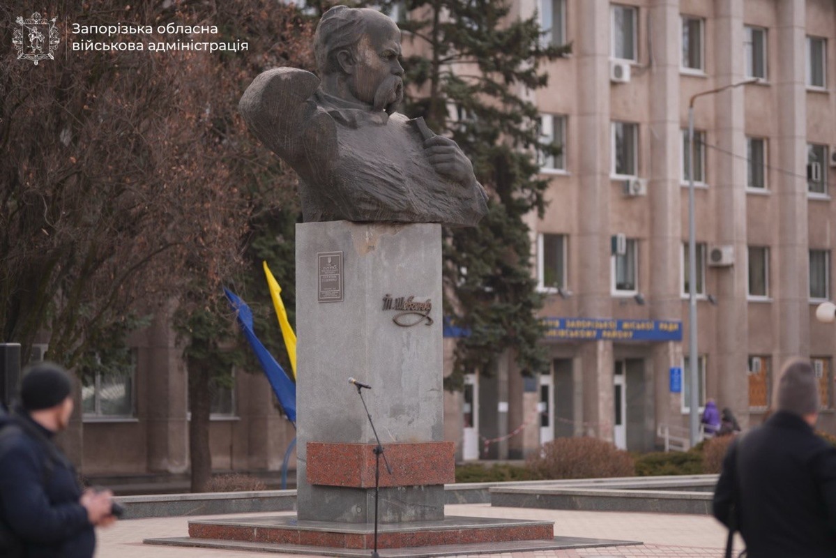 У Запоріжжі відзначили 212-ту річницю з дня народження Тараса Шевченка. Представники влади, правоохоронці, військові та жителі міста поклали квіти біля погруддя Кобзаря.