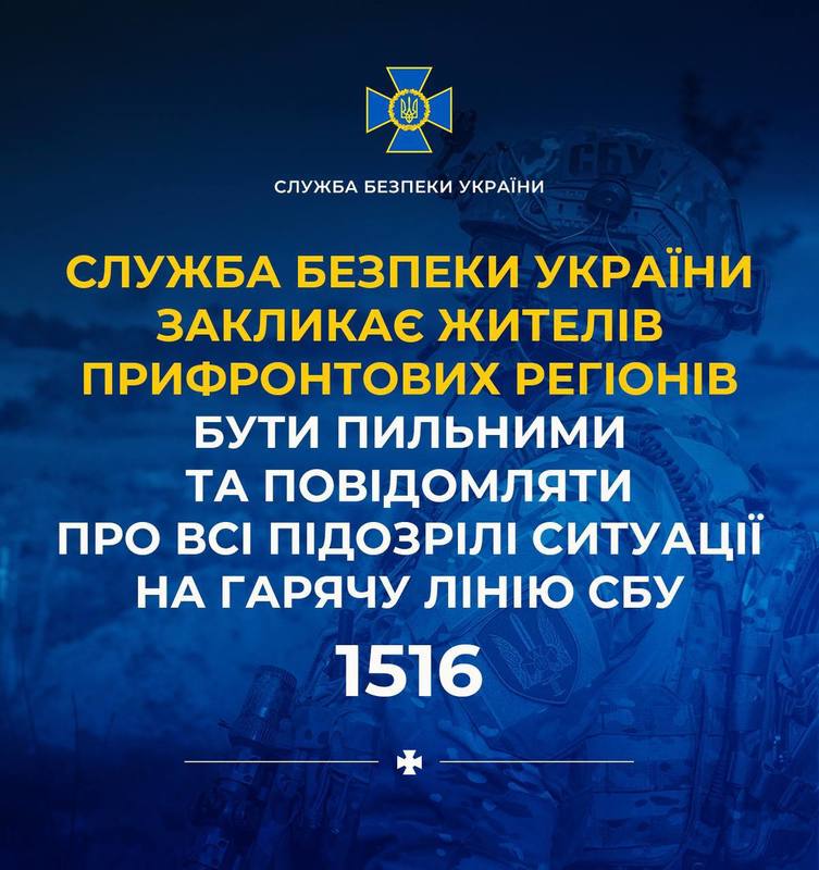 Служба безпеки працює у режимі 24/7, але важлива також уважність кожного громадянина. Спецслужба закликає українців зберігати пильність, не піддаватися на провокації та звертатися на гарячу лінію СБУ за коротким номером 1516 у разі якщо: