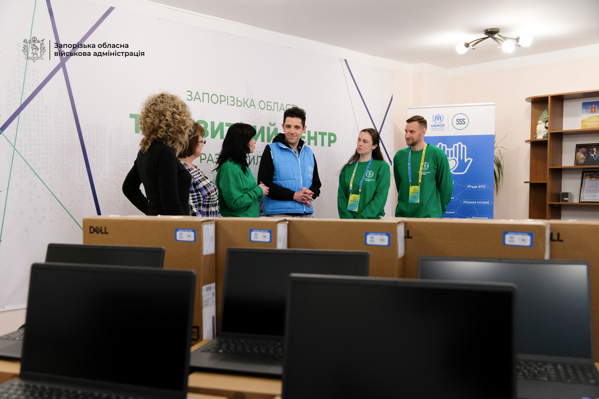 Запорізький обласний транзитний центр отримав 10 сучасних ноутбуків від УВКБ ООН. Це відповідь на реальну потребу – пришвидшити допомогу тим, хто щойно виїхав із прифронтових територій. Транзитний центр працює з листопада 2025 року. Тут евакуйовані проходять реєстрацію, оформлюють довідки та отримують допомогу. З ними одночасно працюють фахівці соціальних служб, Пенсійного фонду і Служби зайнятості. – В Транзитному центрі діє мультидисциплінарна команда, яка допомагає людям одразу отримати всі необхідні послуги. За пів року ми прийняли вже понад 8 тисяч евакуйованих, – повідомила директорка Департаменту соціального захисту населення Запорізької ОДА Світлана Лисенко. Щодня центр приймає нових людей. Часто – після складної дороги, у стані виснаження і стресу. Тому навіть найменші технічні затримки й очікування можуть вплинути на моральний стан людини. – Ми передаємо 10 сучасних ноутбуків для Транзитного центру. Це допоможе швидше обробляти документи і зробить роботу команди ефективнішою. Ми почули запит колег і реагуємо на нього, щоб підтримати людей, які зараз у процесі евакуації, – розповів спеціаліст із захисту на рівні громад УВКБ ООН Ярослав Матяш. Техніку використовуватимуть фахівці, які щодня оформлюють довідки, реєструють людей і супроводжують їх у перші дні після виїзду. – Ми зверталися до різних організацій, але в даному випадку ноутбуки нам надійшли від УВКБ ООН та їхніх партнерів – благодійного фонду Stabilization Support Services. І ми вдячні за те, що ця допомога була вчасною, необхідною і такою потрібною в даний момент саме для Транзитного центру, – підсумувала Світлана Лисенко.