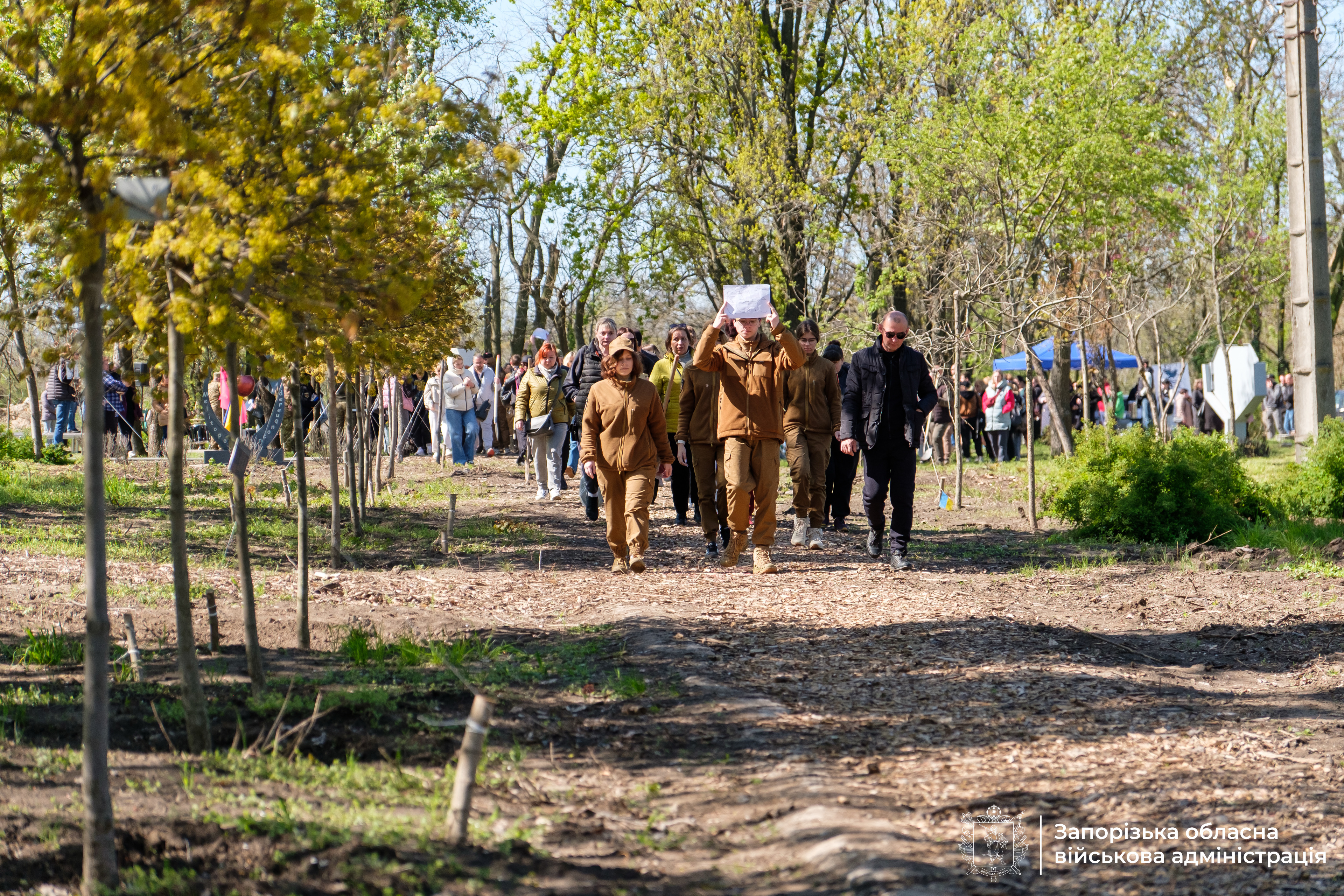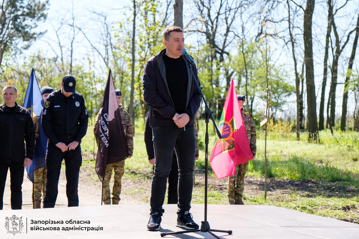 На острові Хортиця в Запоріжжі розростається особливий парк – Парк Честі. Родини полеглих Захисників і Захисниць України висадили тут ще 150 дерев – символ живої пам’яті про тих, хто віддав своє життя за свободу і незалежність держави. Кожне дерево – це більше, ніж саджанець: це окрема історія, нездійснені мрії, любов рідних і вічна шана Героям. Анастасія – дружина полеглого Олександра Богуславського. Для неї дерево в Парку Честі – це символ життя, яке вони мріяли прожити разом, і водночас вічна пам’ять про чоловіка, який став для своєї родини опорою, а для побратимів – людиною, що завжди приходила на допомогу. – Ми з ним дуже давно разом. Познайомилися, ще коли у школі навчалися. У нас є маленький синочок, якому 5 років. Чоловік був дуже щирою, дуже доброю людиною, завжди всім допомагав. Навіть коли я просила, щоб він беріг себе, він завжди говорив, що кожен хлопець повернеться додому в будь-якому випадку. На жаль, так сталося, що і він повернувся додому, але не так, як ми планували, як ми мріяли. У нас було дуже багато планів на це життя, – розповіла дружина загиблого Героя Анастасія Богуславська. Батько полеглого Захисника Володимир згадує сина Олександра як людину, яка з юних років вирізнялася наполегливістю, відповідальністю та високими життєвими принципами. – Він дуже гарно вчився. Закінчив школу, коледж, університет на відмінно. Коли почалася війна, він приїхав з Харкова до Запоріжжя, і вже 25 лютого 2022 року ми разом вступили до лав морської піхоти. Служили поруч – в одному батальйоні, в одній бригаді. Звісно, для мене, як для батька, дуже важливо, що хлопці пам’ятають і вшановують його пам’ять. Пам’ять про сина – це не лише особистий біль, а й велика гордість за його шлях і вибір, – поділився Володимир. Цього дня в Парку Честі висадили ще 150 дерев. Відтепер історія кожного Героя доступна за QR-кодом – щоб пам’ять про них жила вічно. – Як говорить Євангеліє від Івана: «Ніхто більшої любові не має над ту, як хто свою душу поклав би за друзів своїх». І наша вдячність тим, хто поклав своє життя заради майбутнього. Такі знаки пам’яті, як висадження дерев – це свідчення того, що життя продовжується і дає надію, що перемога буде за нами. Ми розуміємо, що біль втрати ніколи не зникне, але віримо, що ця жертва не була даремною. Вічна пам’ять і вічна слава полеглим Героям України, – наголосив Преосвященний Фотій, єпископ Запорізький і Мелітопольський. Заступник голови Запорізької ОДА Михайло Семікін звернувся до сімей полеглих Захисників і Захисниць України із теплими словами підтримки. – Сьогодні ми у самому центрі Хортиці, в місці, яке народилося в любові та одночасно болю. Тут кожне дерево має своє ім’я, а кожна гілка нагадує про те, що життя триває, але триває завдяки тим, хто віддав своє. 550 імен навіки залишаться в історії цієї землі, в історії нашого Запоріжжя. Ми маємо зробити все, щоб пам’ять про них жила вічно, – підсумував Михайло Семікін.