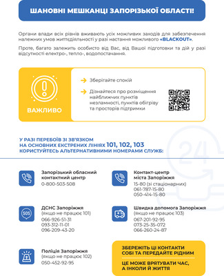 За повідомленням ГУНП у Запорізькій області за минулу добу окупанти обстріляли цивільну інфраструктуру у районі населених пунктів Запоріжжя, Мала Токмачка, Затишшя, Гуляйполе, Білогір'я, Чарівне, Оріхів, Залізничне, Новоданилівка, Малинівка, Ольгівське, Новоандріївка, Щербаки, Новомиколаївка, Новояковлівка, Темирівка, Полтавка, Червоне, Степногірськ, Малі Щербаки, Степове, Кам'янське.